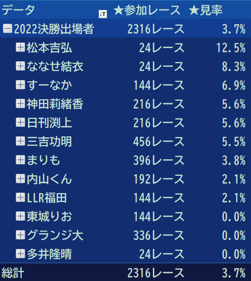 ⑥12レース成績