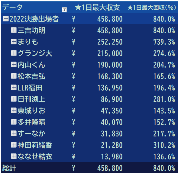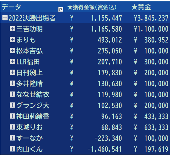 流石決勝進出者 賞金を加算すれば
