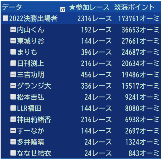 まりもさんが1位になっていました