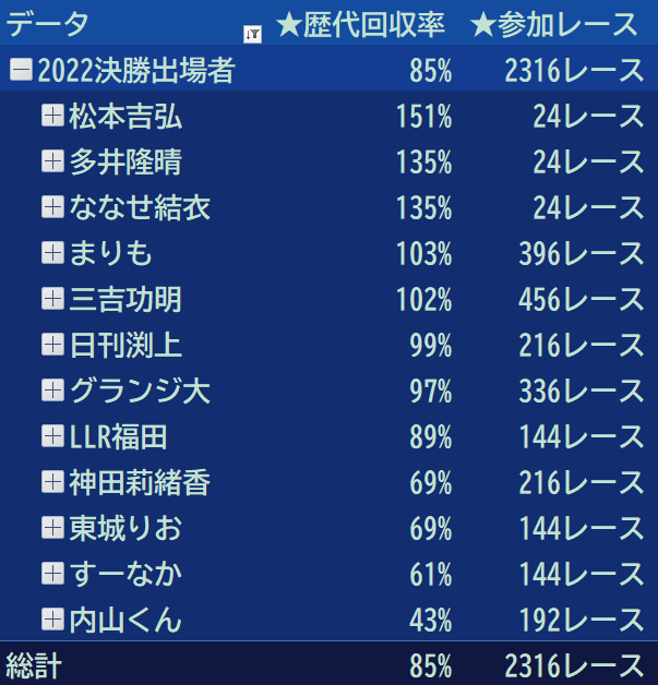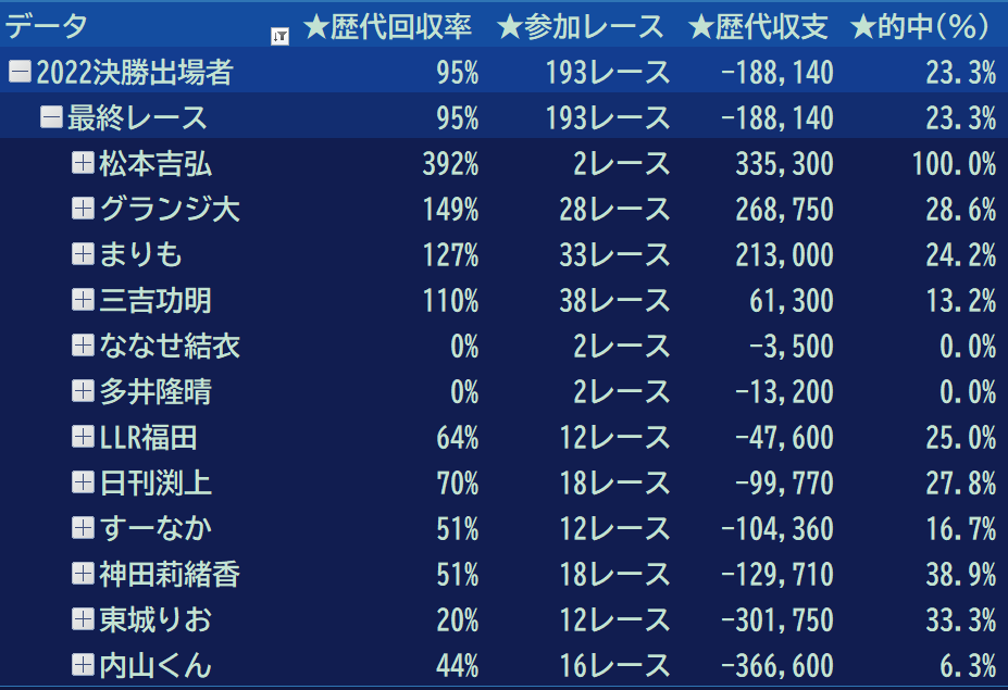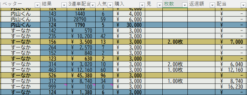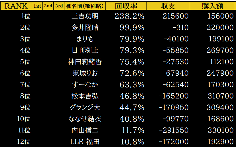 プラス回収率はすーなかさんのみ