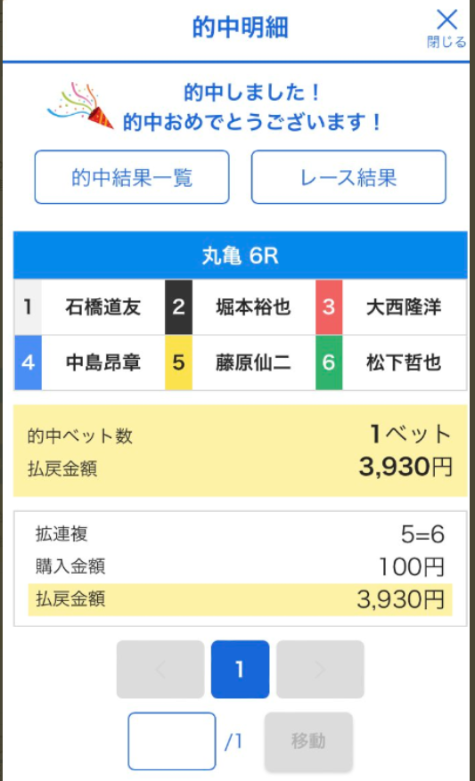 43走中5-1-6 (6が藤原選手) が3回