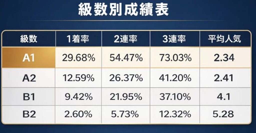 A2選手は人気のわりにB1選手と左程変わらない競争成績