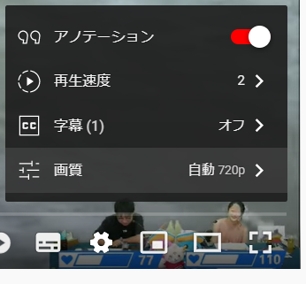 歯車のマークから画質を