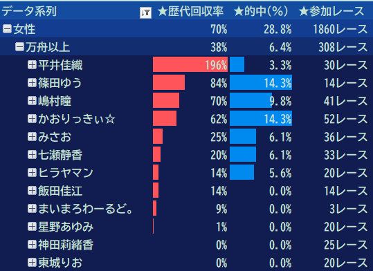 コロシアムで過去に308レース 万舟決着のレースが女性演者の時にありました。